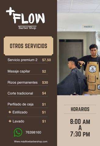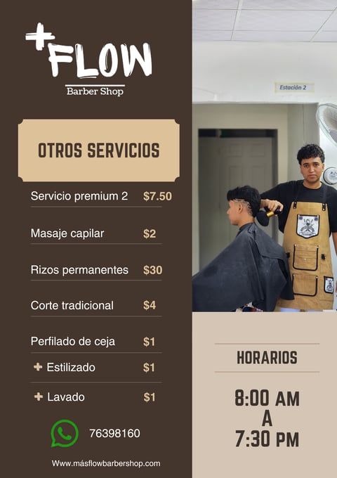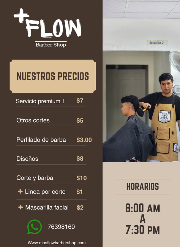 En Más flow barbershop, ofrecemos un espacio dedicado a nuestros dos barberos, cada uno con su propia imagen y detalles. ¡Descubre su estilo y elige tu favorito!